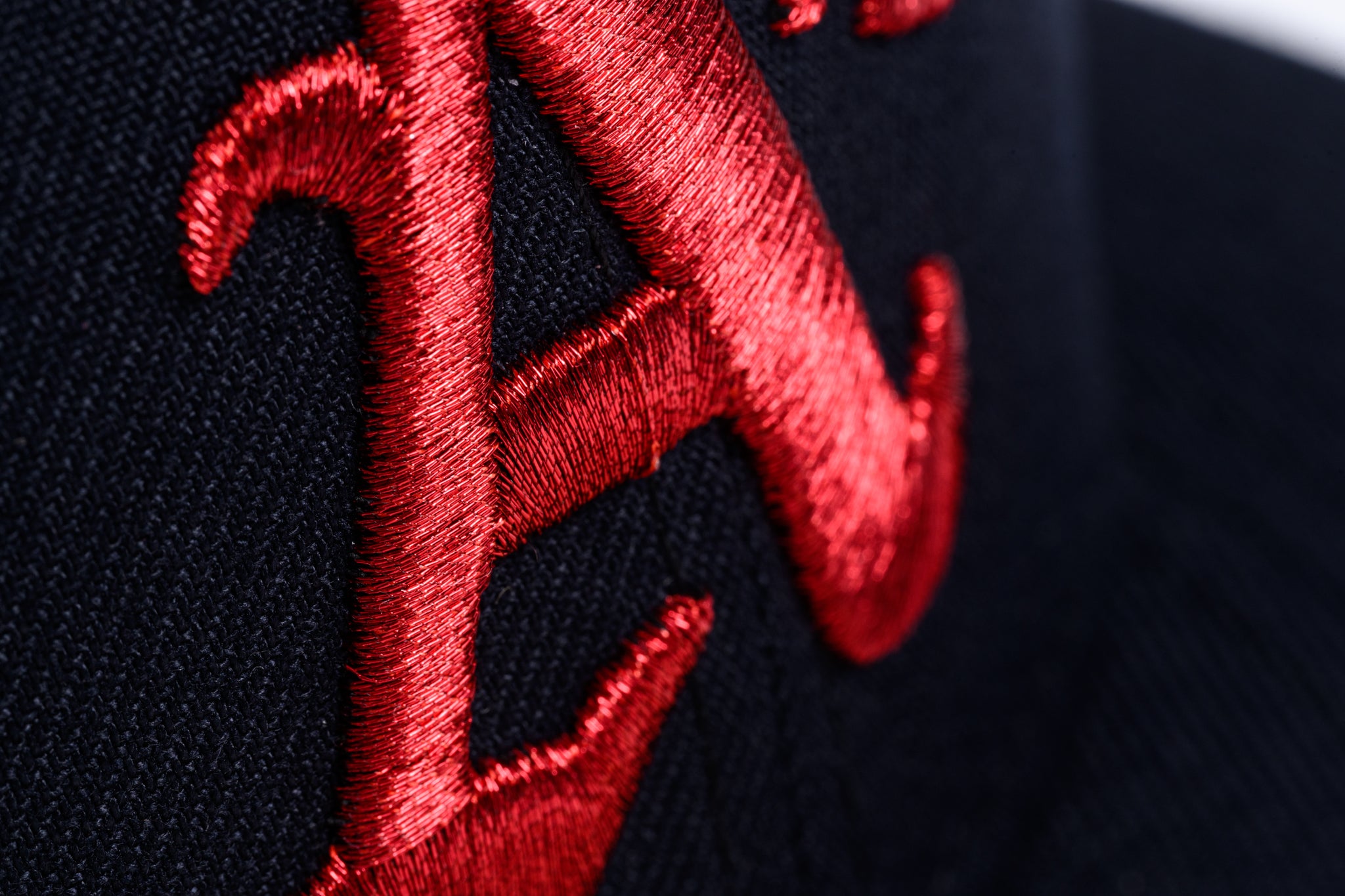 NEW ERA "MONEY MITCH" OAKLAND A'S FITTED HAT (NAVY/SCARLET)