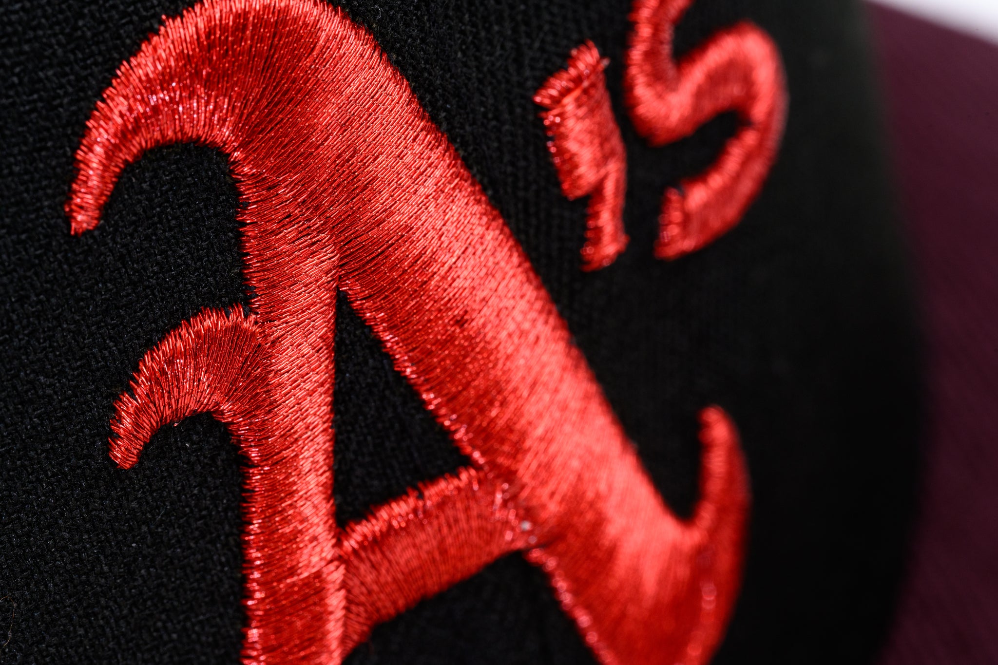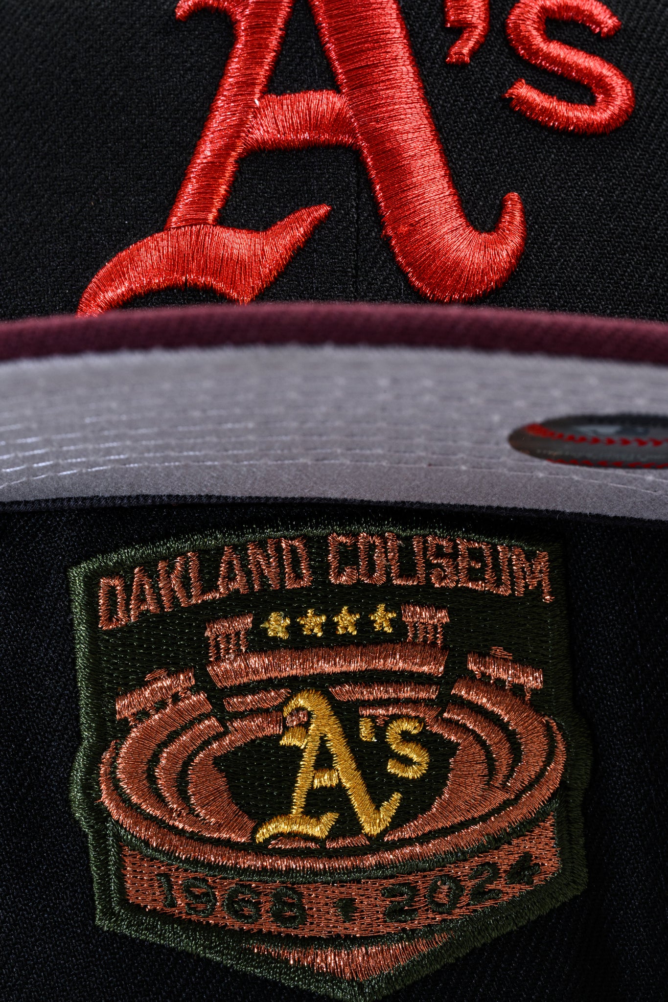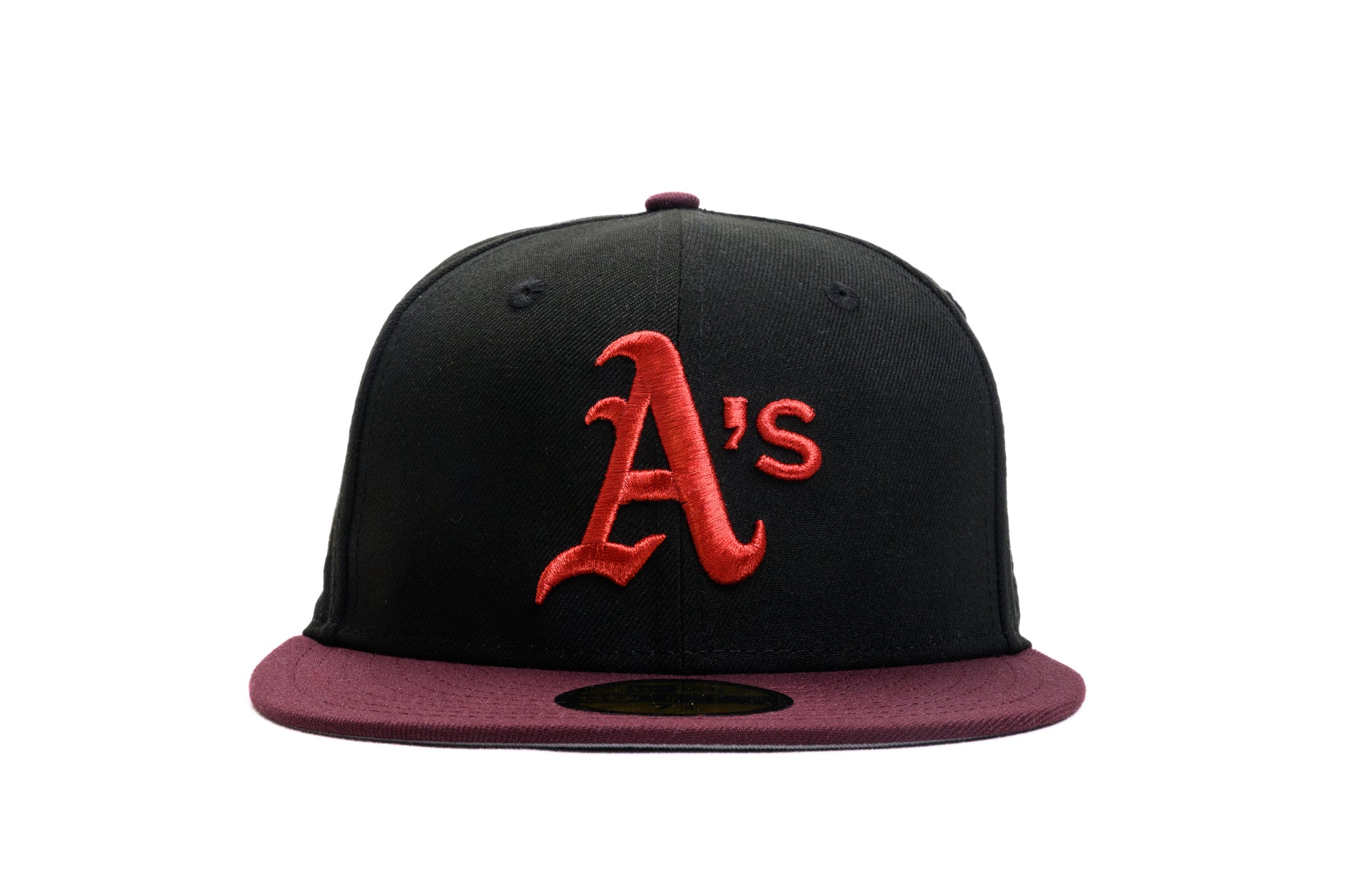 NEW ERA "UNTOUCHABLE" OAKLAND A'S FITTED HAT (BLACK/BURGUNDY)