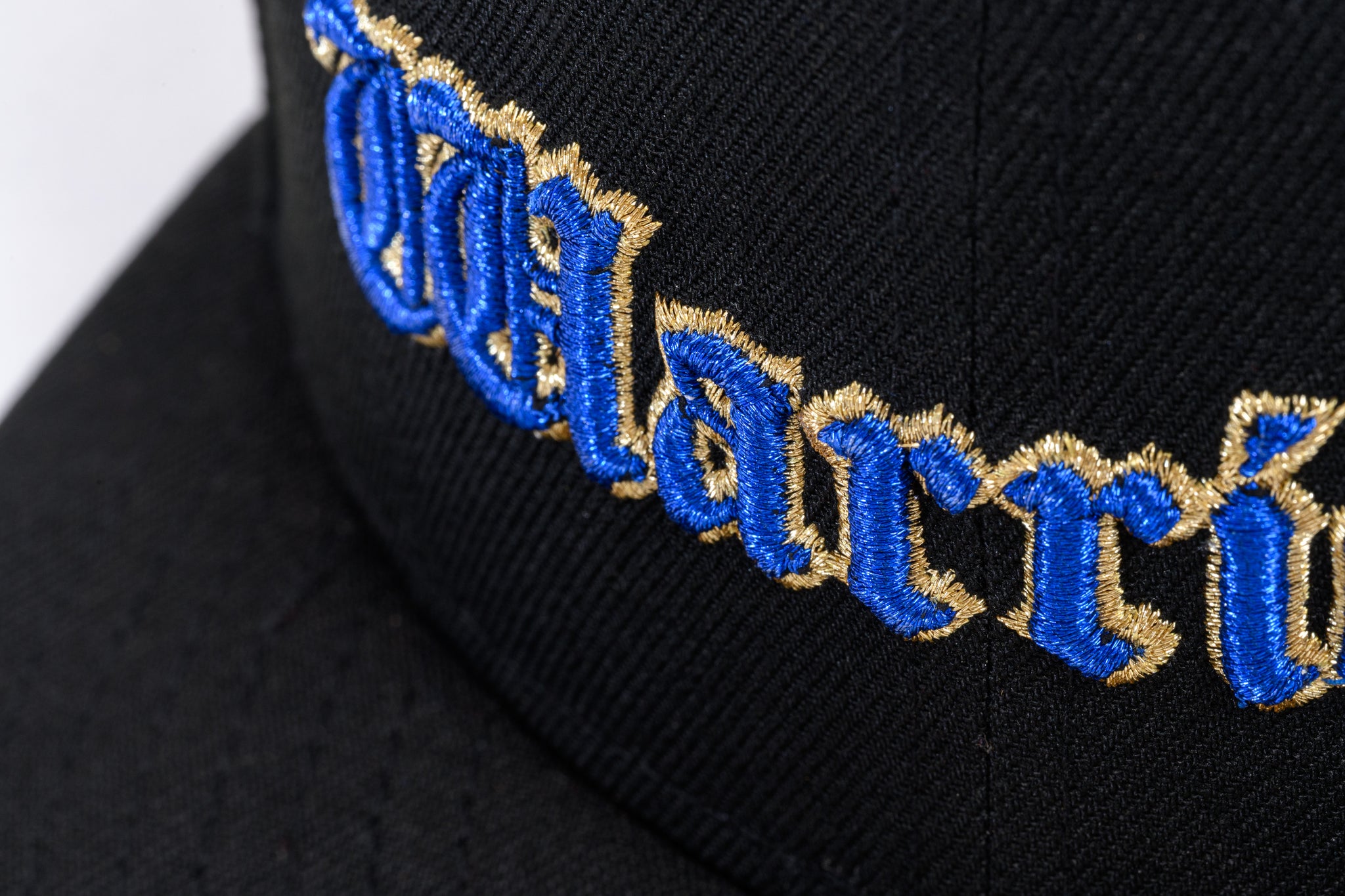 NEW ERA "OLD MONEY 2.0" GOLDEN STATE WARRIORS FITTED HAT (BLACK/ROYAL BLUE)